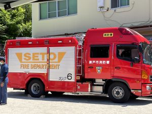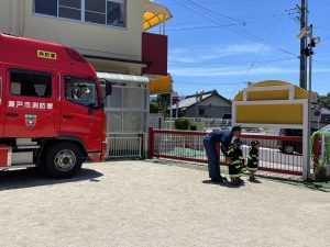 避難訓練・消防自動車登場!