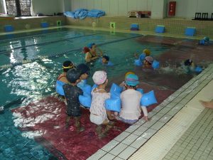 2025年11月12日 コナミスイミングに出かけました 年中さんが コナミスイミングにでかけ、レッスンを受けました。 今日はすこし寒かったのですが、プールの中は暖かいですね。 みんな元気に参加をしました。