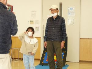 クロリティ―輪投げをして、ボードにひっかけて点数を競いました。