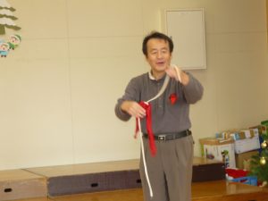 2025年12月4日 マジックを楽しみました。 1ねんに一回のマジックを楽しみました、 新聞紙に注いだコップの水か来消えたり、出たり ひもが立ったり、落ちたり、トランプのマジックを楽しみました。 ありがとうございました。