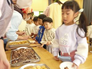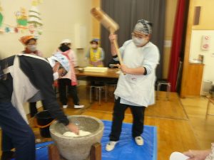2025年12月5日 餅つき会をしました 地域の役員さんに来ていただき、餅つき会を行いました。 杵で餅をつきました、年長さんもつきましたよ。 ついたお餅は、おいしくいただきました。役員さんありがとうございました。