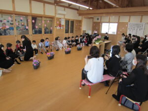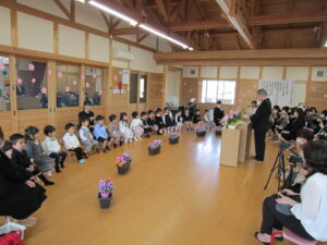 子どもたちは、上手に歌をうたい、あいさつをすることができました。立派に成長した姿